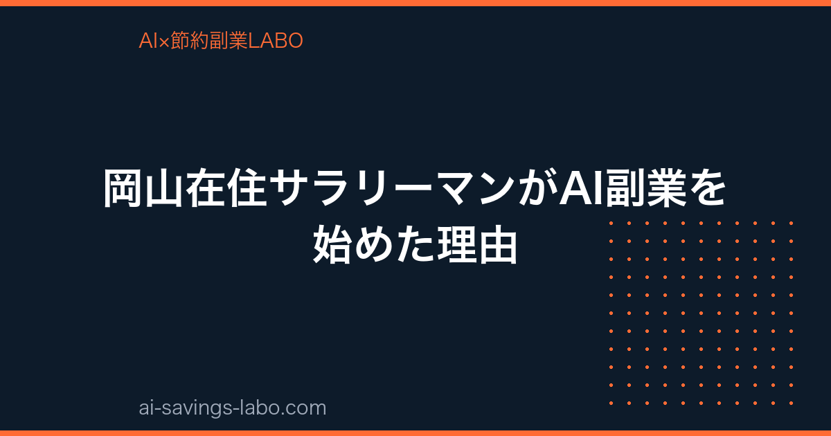 今日も朝6時に起きて、子どもが目覚める前の30分だけパソコンを開いた。岡山の朝はまだ少し肌寒くて、コーヒーを片手にぼんやりとした頭でAIに話しかける。そんなところから、私の副業っぽい時間は始まる。